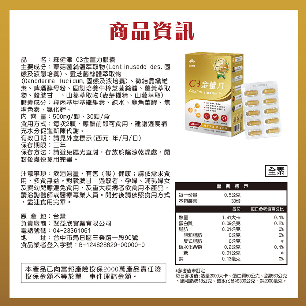 森健津- C3金薑力膠囊(全素) 【30顆/盒】六盒入優惠組合